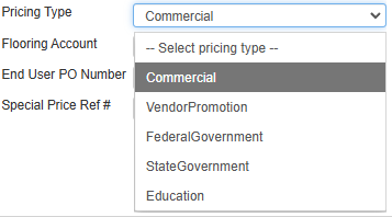 Here you can choose the TD SYNNEX pricing market. Typically the market used will be Commercial (Non-Govt), but for government and educational orders, there are options for these.
