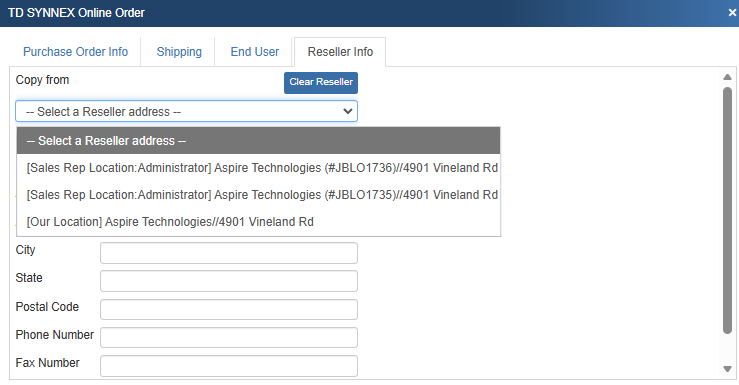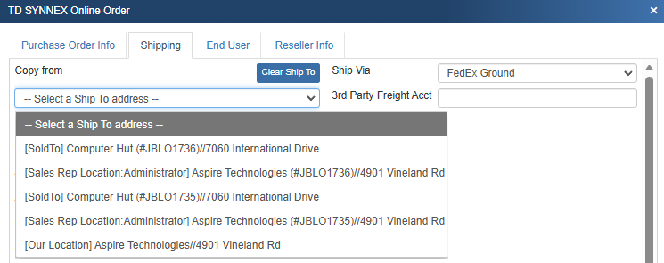 Note: When you submit the TD SYNNEX electronic order, the Ship To information entered into the online order will be saved in the QuoteWerks purchase order. |