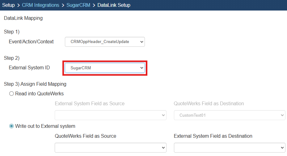 Step 3: Under the External System ID field, change the drop down to SugarCRM.