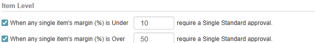 If a single item’s margin is under a certain percentage, it can require approval. The same is true if the margin is over a certain percentage, an approval is required.
