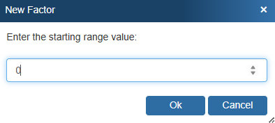 3. Click on the orange New button to create factors. Enter the starting range value and click OK. Repeat this process until all ranges have been input.