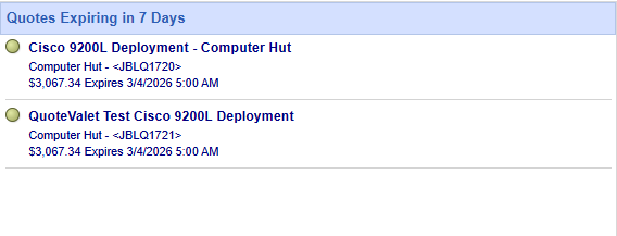 From the QuoteWerks Dashboard, you can also see quotes expiring within the next week and even handle Autotask and ConnectWise quote-request notifications.