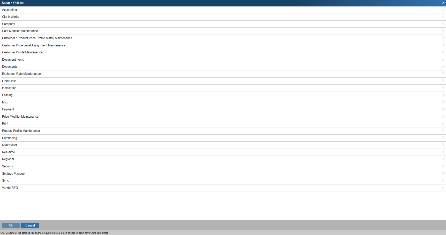You can configure many installation-wide settings in QuoteWerks Web under the Setup -> Options menu.