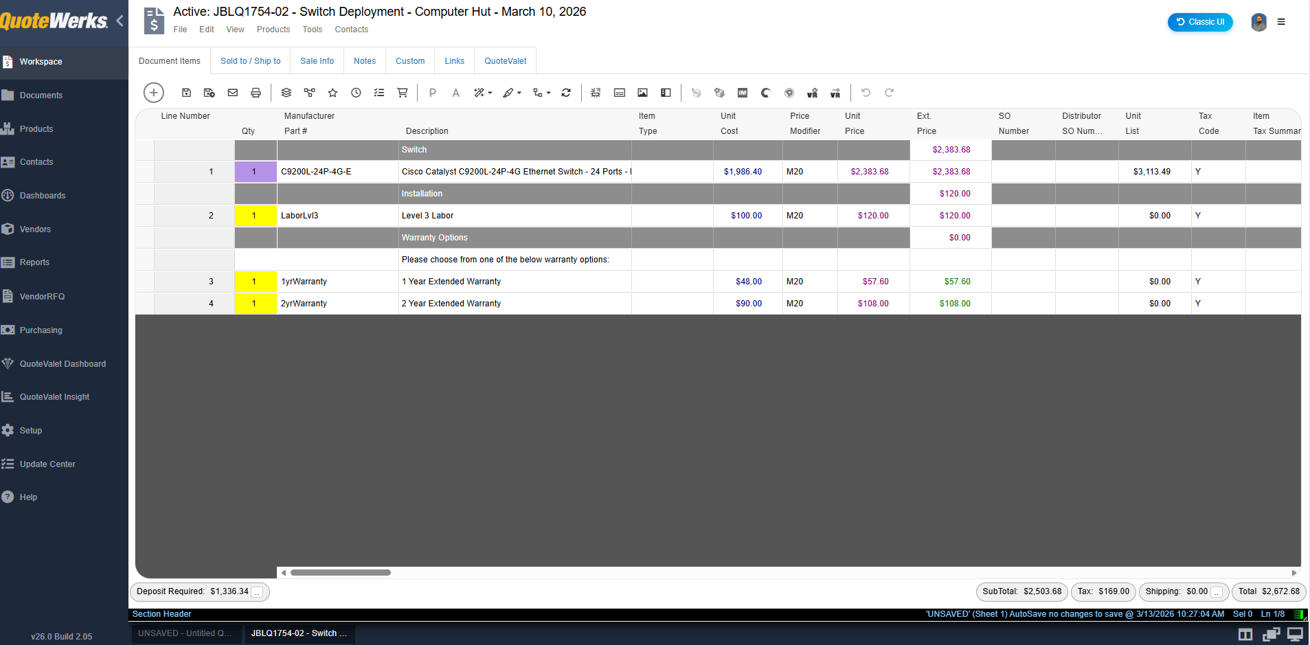 The updated grid toolbar menu has new options that make navigating and working with the QuoteWork easier.