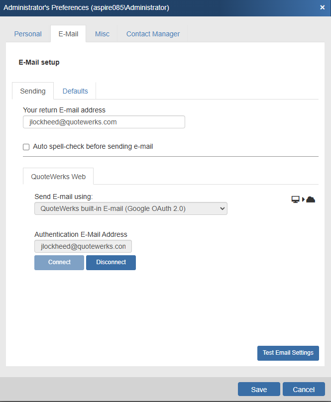 QuoteWerks' Built-in Email (Google OAuth 2.0)