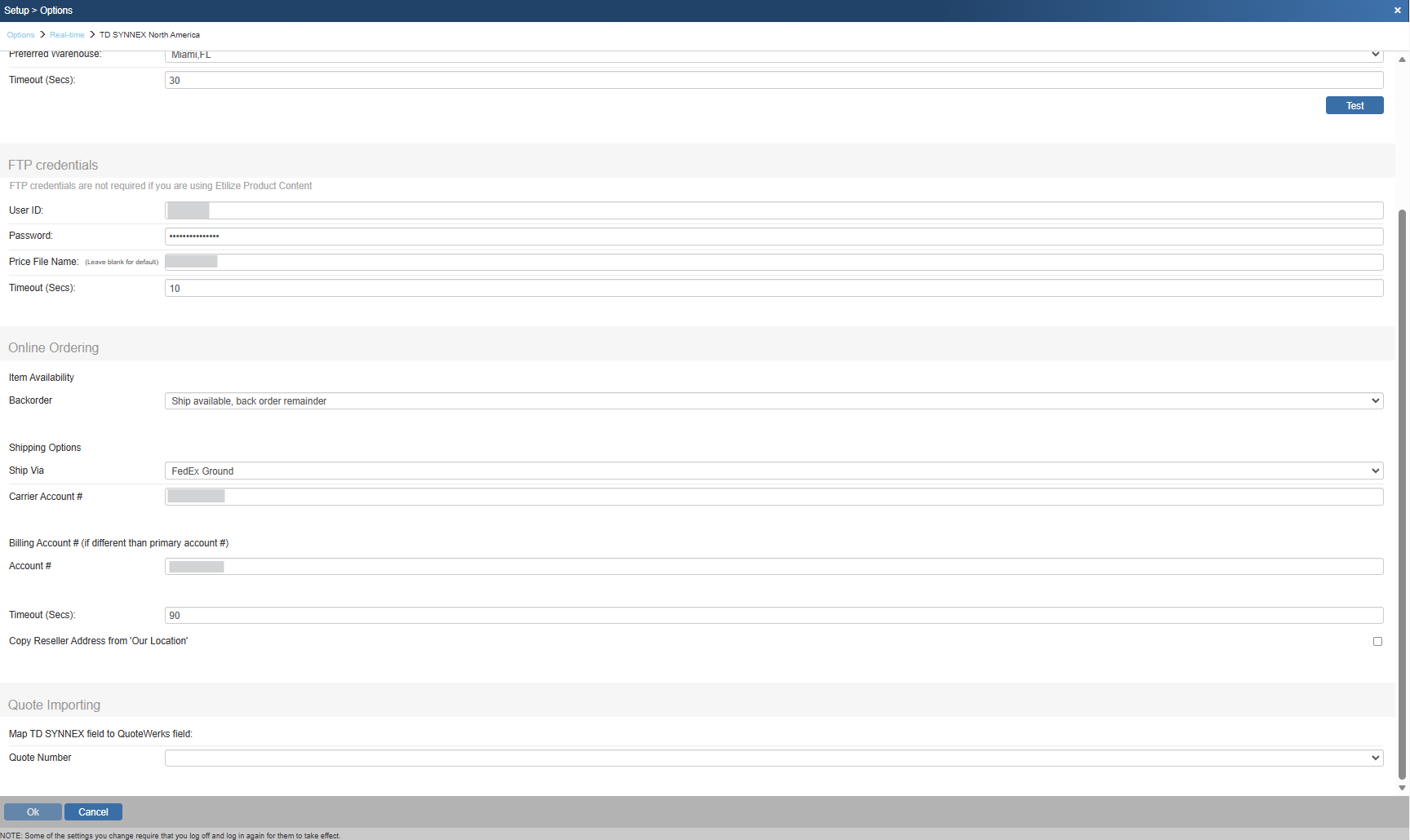 This is used to adjust the amount of time QuoteWerks waits for a response after submitting an order. It takes TD SYNNEX longer to process an order request, so the timeout value for the online ordering is typically set to a larger number than the real-time pricing timeout. The default is 90 seconds.