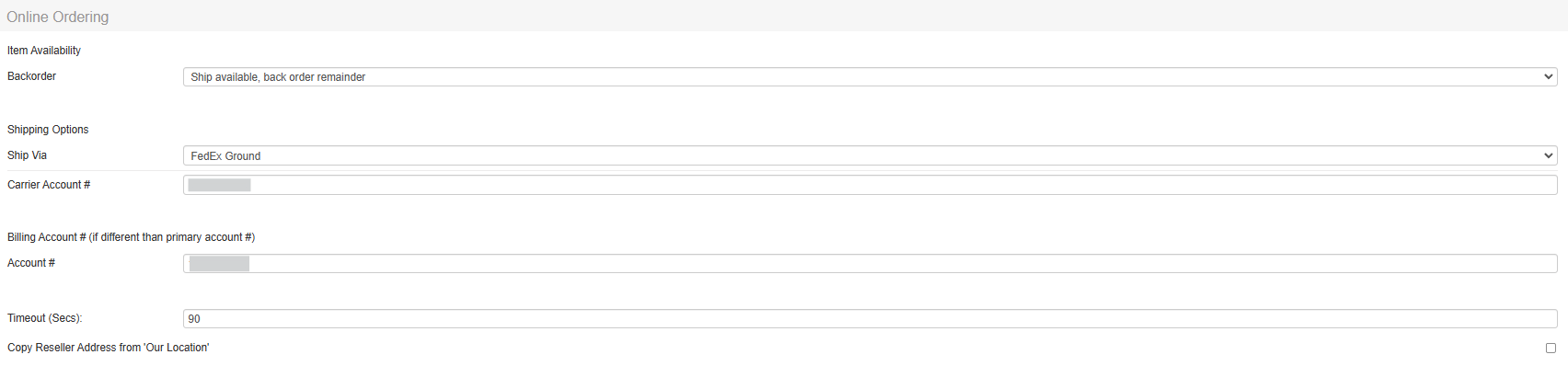 Here you can assign a different TD SYNNEX account number specifically for billing, so that the billing terms for that account will apply to online orders. If left blank, all orders will be billed to the account number listed on the primary TD SYNNEX tab.