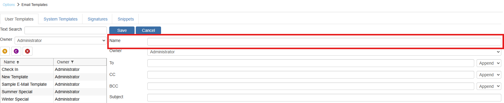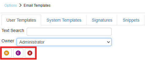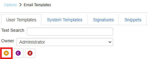 To create a new template, first choose the “Owner” from the drop down list of where you want to create the new, blank template. This is going to create the new template under that user. Click the