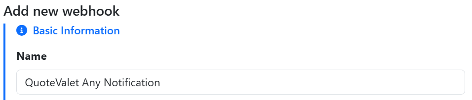 5. Start by entering a name for your webhook. This will display on the list of webhooks on your landing page so make sure it accurately describes what the webhook is doing for easy identification.