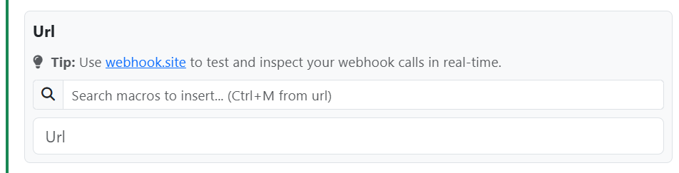 8. Input the URL that you would like to send the webhook to into the URL text box. If you would like to test your webhook before sending it to a live endpoint you can use a tool like webhook.site.