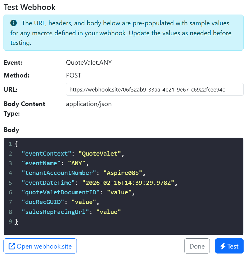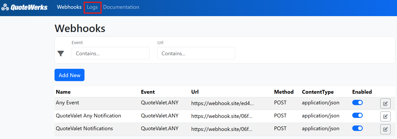 1. Navigate to https://webhooks.quotewerks.com/