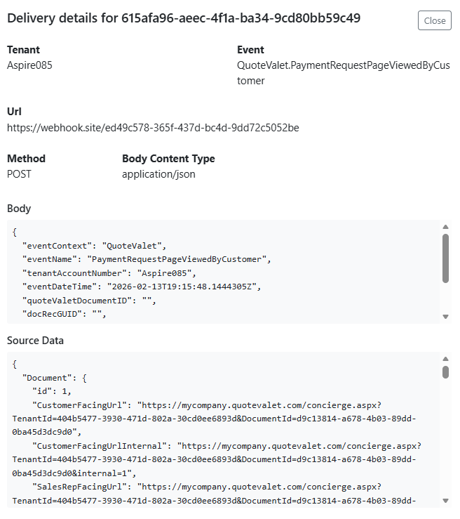 A webhook is an automated HTTP callback triggered by an event. When a defined action occurs in QuoteWerks, the system sends structured data (typically JSON) to a specified URL endpoint in another application.