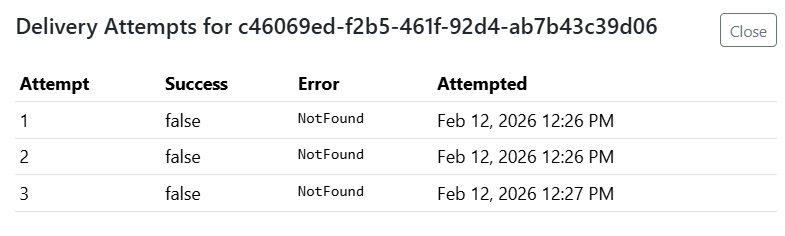 icon to review the delivery attempts and their outcomes. If available, an error code will be listed.